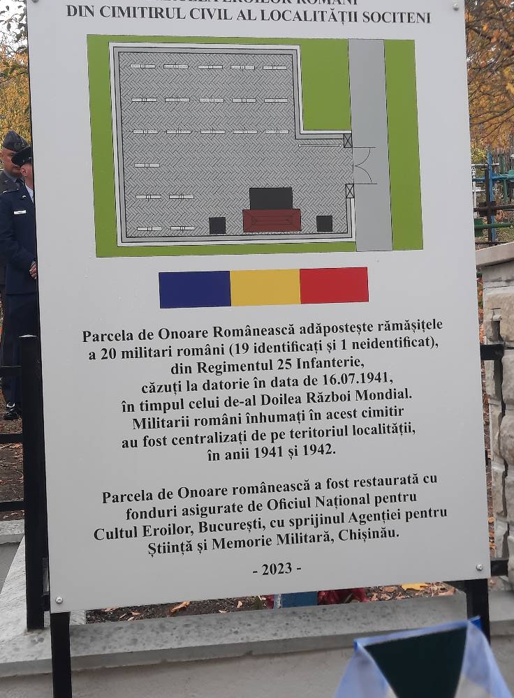 În satul Sociteni, raionul Ialoveni, a fost inaugurată, după restaurare, Parcela de onoare românească din cimitirul localității, unde sunt înhumați 20 de militari români, căzuți în timpul celui de-al Doilea Război Mondial.